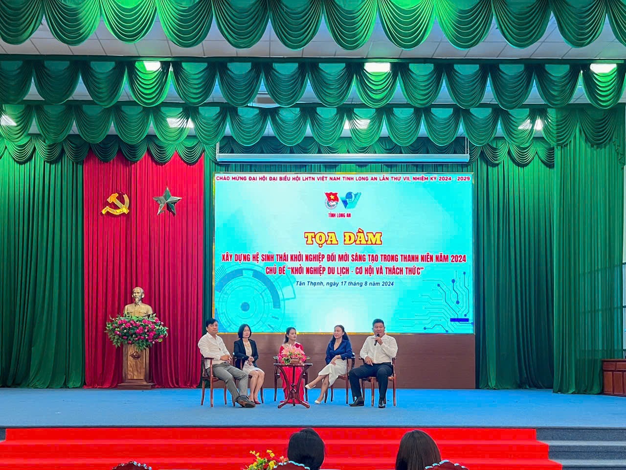📋 Ngay sau lễ khai mạc, lớp tập huấn kiến thức khởi nghiệp và chương trình Tọa đàm “Xây dựng hệ sinh thái khởi nghiệp đổi mới sáng tạo trong thanh niên Long An” với chủ đề “Khởi nghiệp du lịch – cơ hội và thách thức” đã được diễn ra. Anh Dương Long Thành, với vai trò là diễn giả khách mời đã truyền tải những kiến thức và tinh thần khởi nghiệp mạnh mẽ đến thế hệ thanh niên trẻ, đặc biệt là Khởi nghiệp trong lĩnh vực Du lịch Xanh tại Long An.